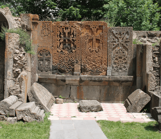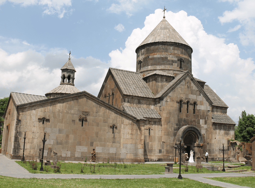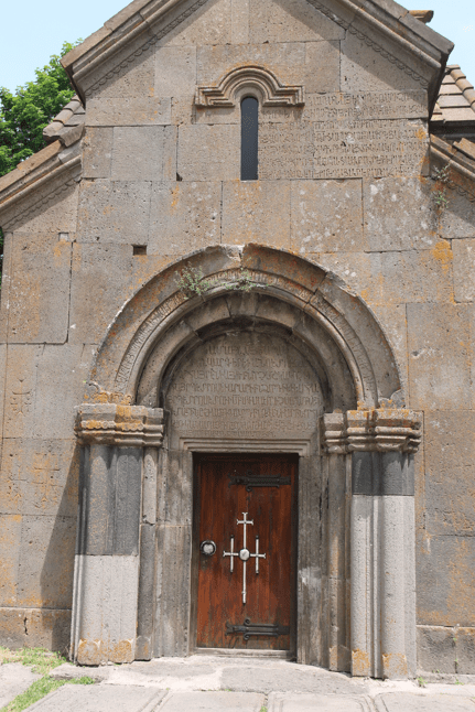 The main temple, the church of Saint Grigor, is the monastery’s first structure erected by Grigor Magistros Pahlavuni in 1013. Being of a domed hall type, it is one of the typical church structures of the period of developed feudalism in Armenia. The interior of the temple is divided into three spaces by two pairs of wall-attached abutments. The central (and largest) space of the church is crowned by a broad cupola resting on spherical pendentives. The cupola and pendentives were destroyed by an earthquake in 1927, and reconstructed in 2000.