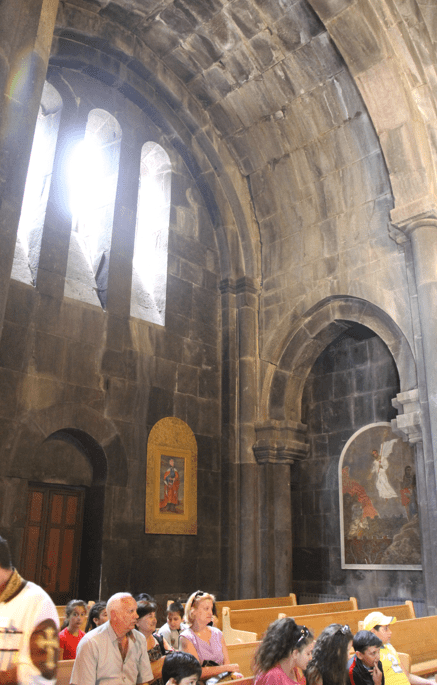I love the typical old style of the Armenia churches where the inside is all dark and there are spots of light filitering in from windows and showering bits of the church with streaks of light, its just so eerie in a way and I feel like ive been taken back in time!