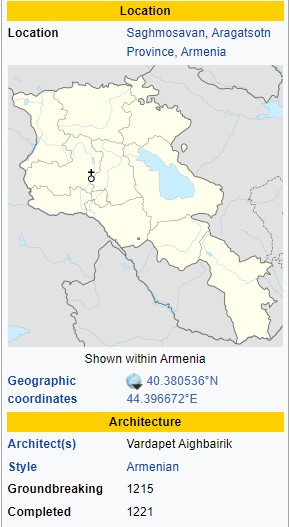 Saghmosavank Monastery built in 1221 and is in a beautiful location overlooking a valley. There was a little stream flowing from an aghpur towards the church and infront of it, it was just beautiful! There is a little chapel on the right side of the church