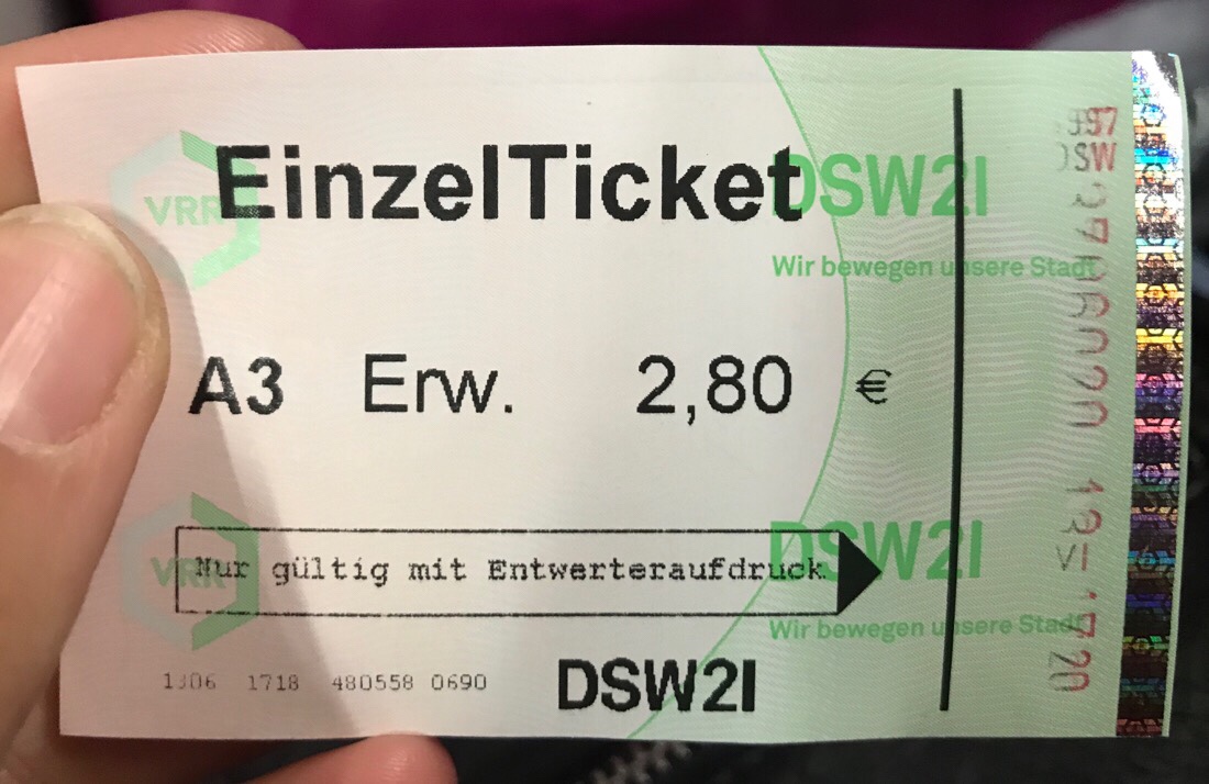 This trip… U44 Tram – €1.70 each to Dortmund city centre and took around 22mins – to station Dortmund Wickede