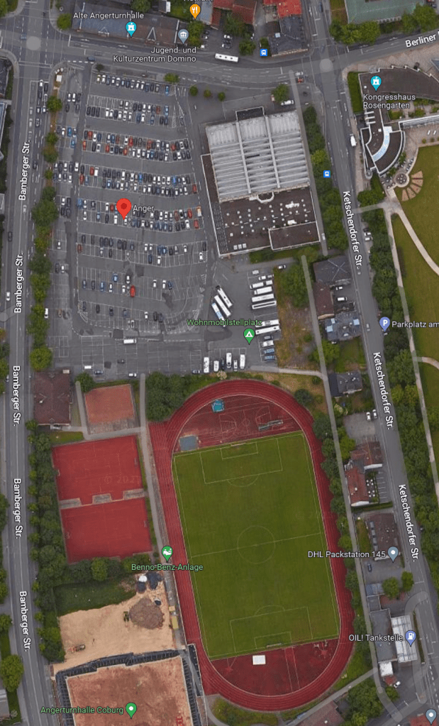 known as Wohnmobilstellplatz in German, this campsite is actually just in the carpark area of the stadium just on the outskirts of Coburg