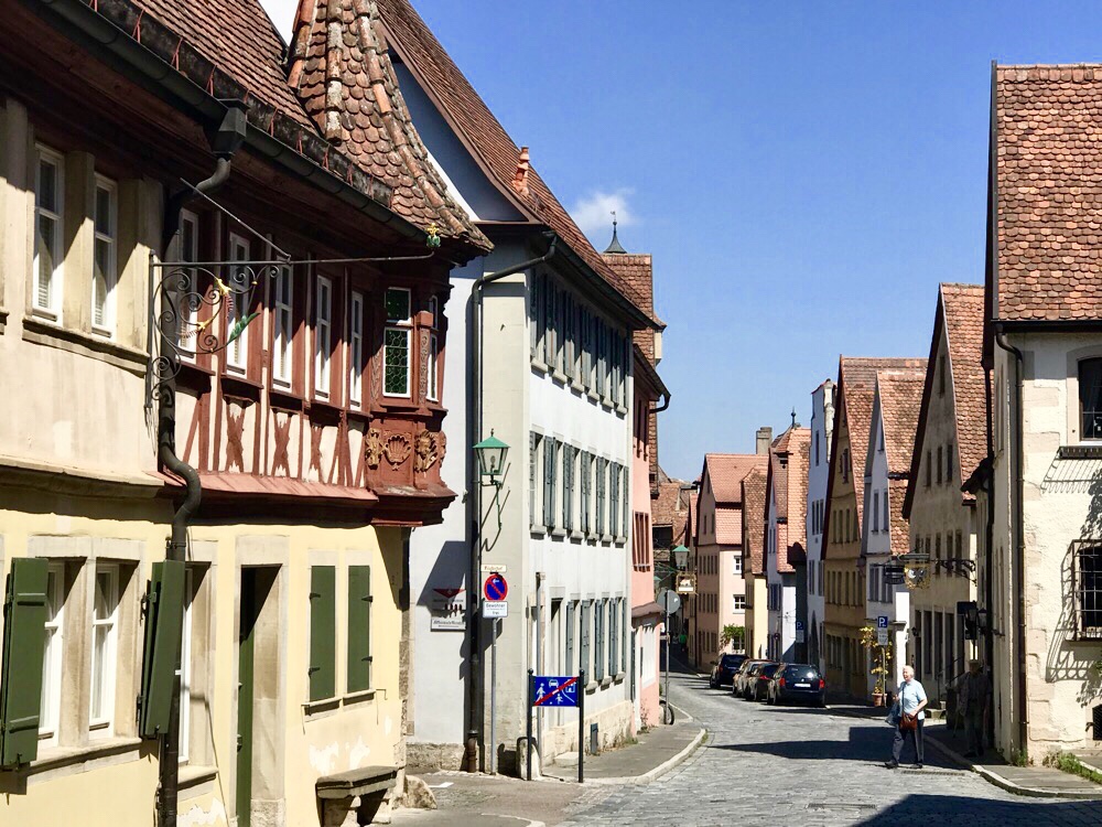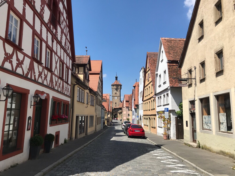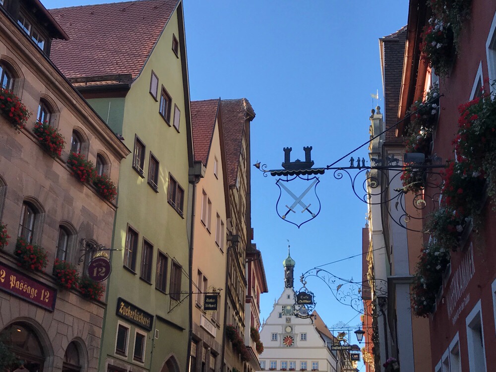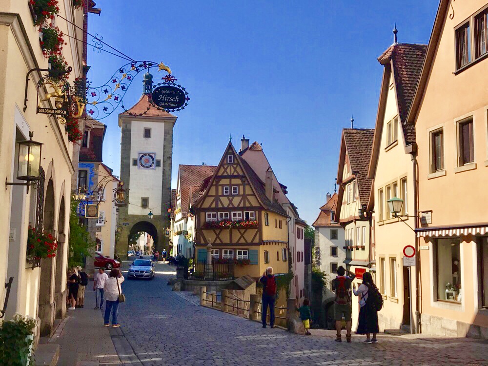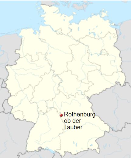 The full name of the town is Rothenburg ob de Tauber which translates to “Red fortress above the Tauber” the town sits on a plateau that over looks the River Tauber
