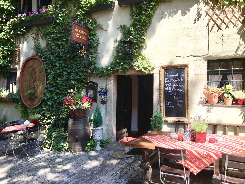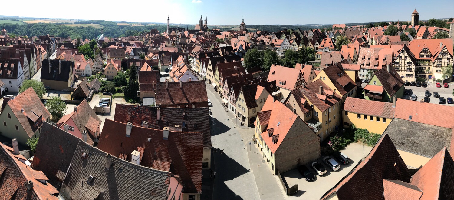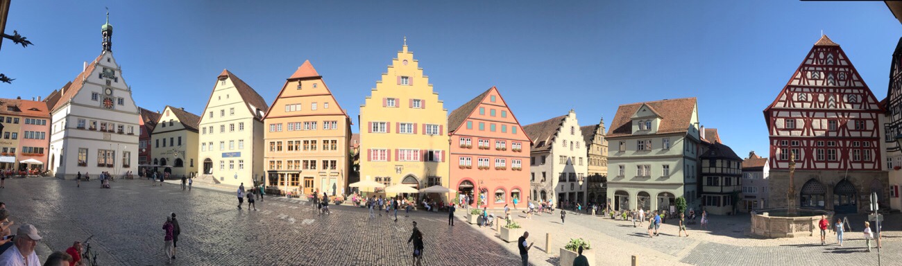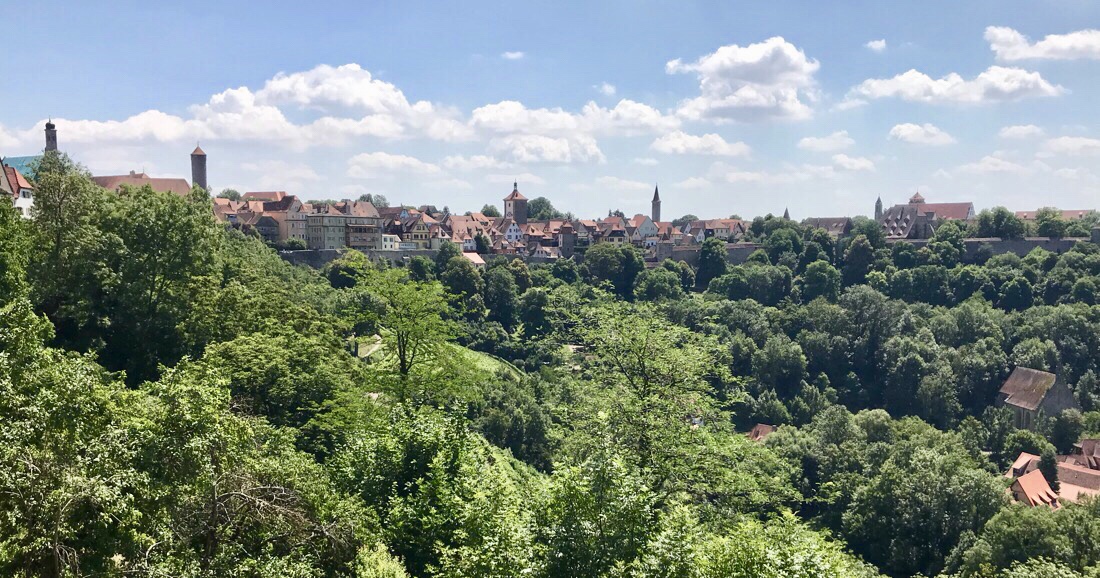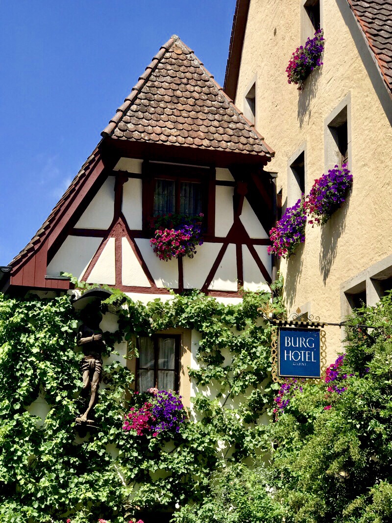 The full name of the town is Rothenburg ob de Tauber which translates to “Red fortress above the Tauber” the town sits on a plateau that over looks the River Tauber