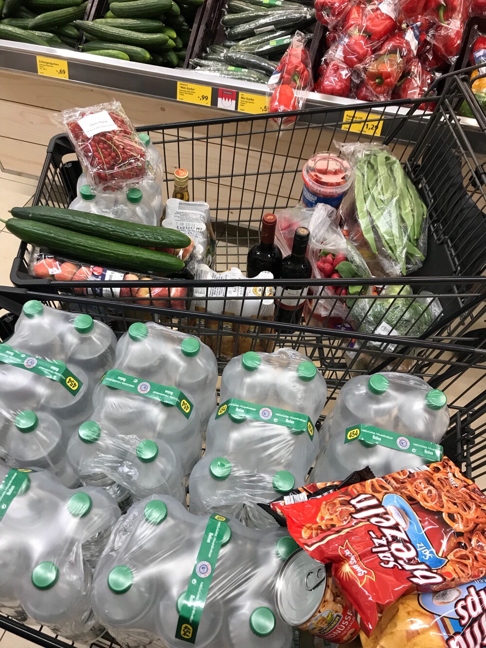 We have so much room in the boot of our van! Stocking up on sparkling water