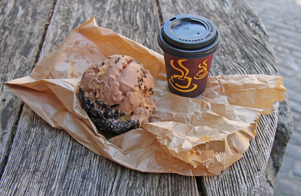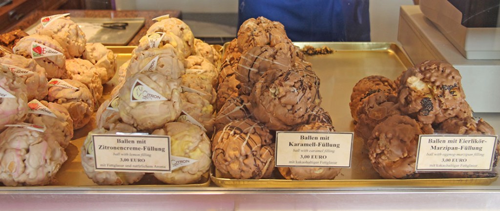I decided to try the local pastry delicacy called a “snowball” which was different from what Ive seen around Germany, it was something like a long string of pastry clumped into a dough ball and deep fried, then dunked into chocolate! The one I bought had eggnog and marzipan cream inside