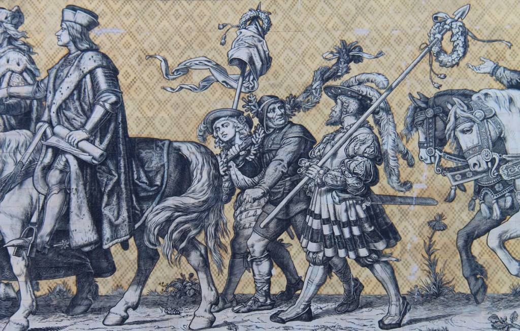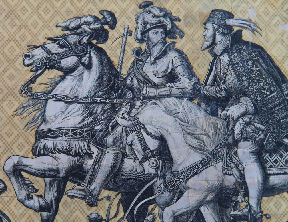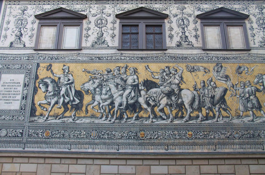 It quickly faded on a wall of the castle so it was transferred to about 23,000 Meissen porcelain tiles between 1904 and 1907, its now located on the outer wall of the Stables Courtyard of Dresden Castle