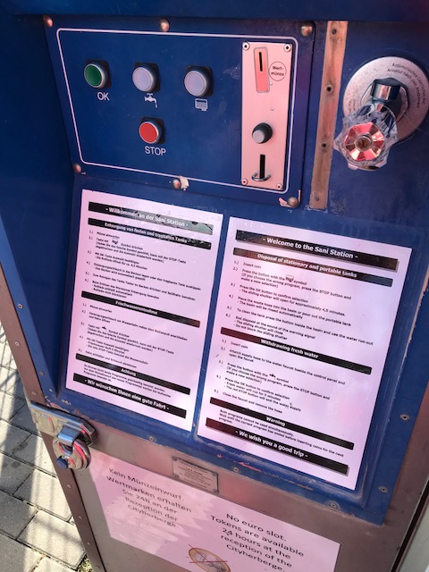 We had to put an ugly piece of laminated paper on our dashboard to show we have paid. We had to pay for and use tokens to get fresh water and empty the toilet