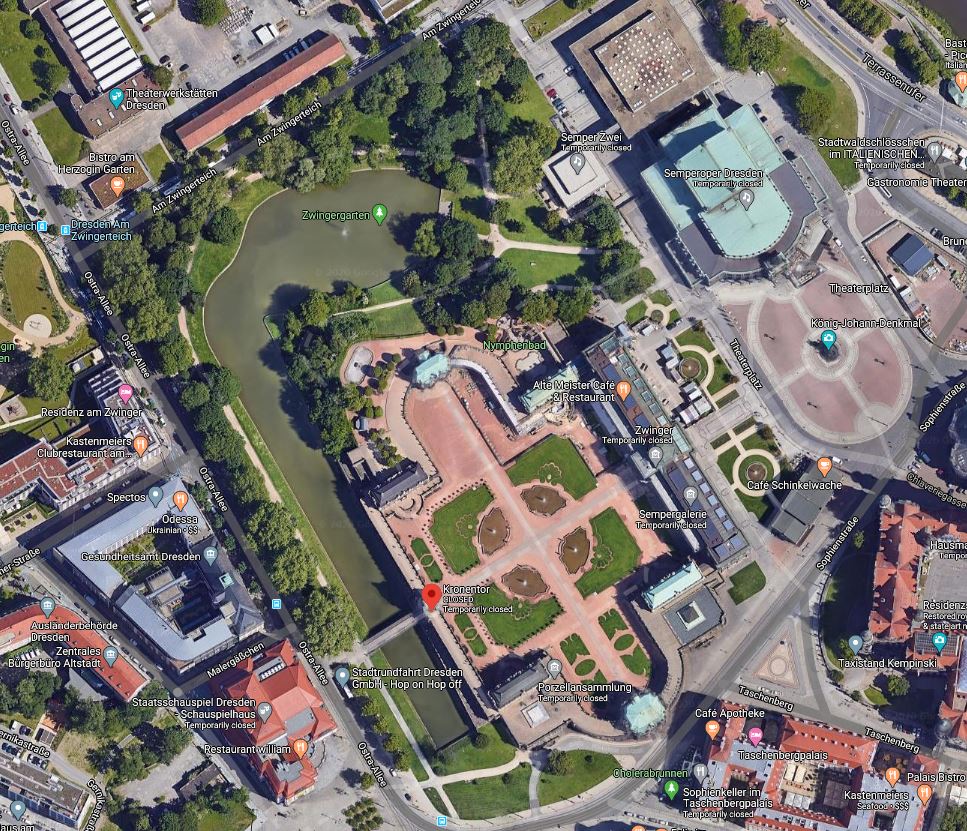 The Zwinger is a complex of beautiful buildings that house Museums surrounding a gorgeous garden in the middle of the pavillions and was originally designed as a forecourt for the castle