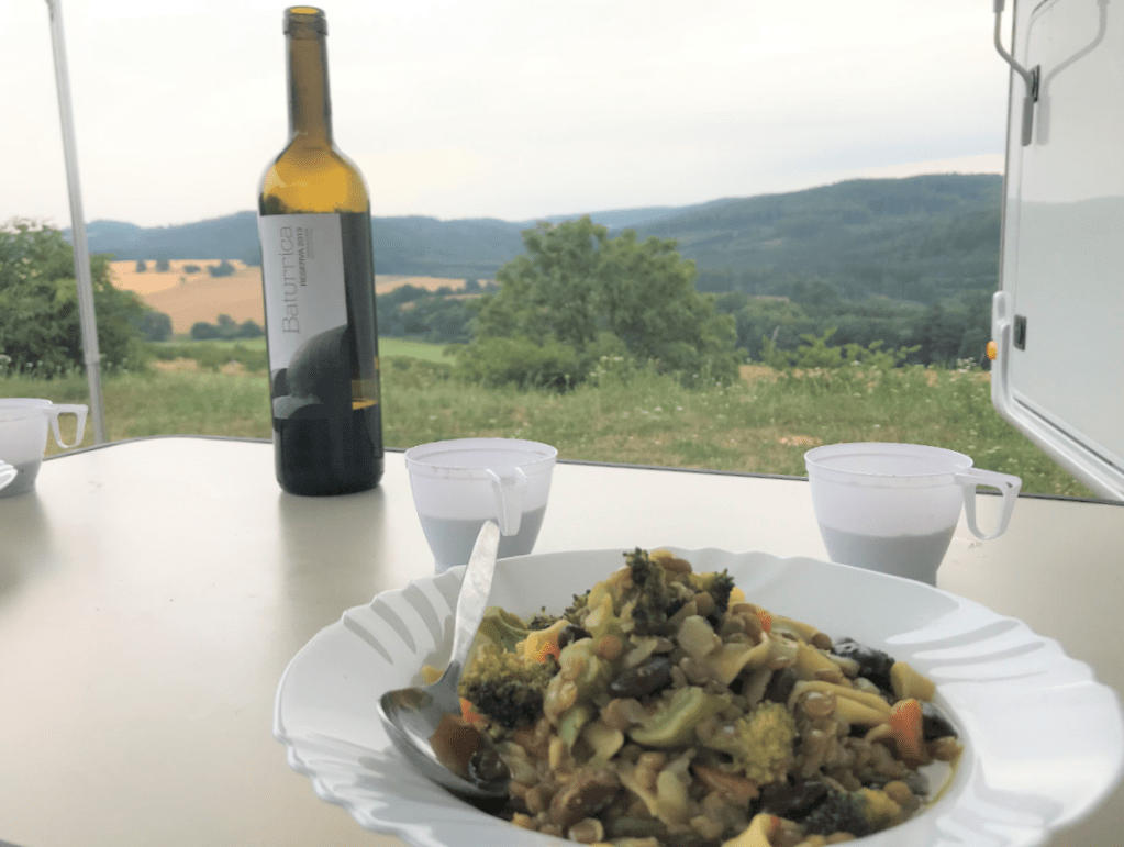 Went back to the van and had some vegetable stew for dinner – we didnt want to leave this relaxing view and the castle