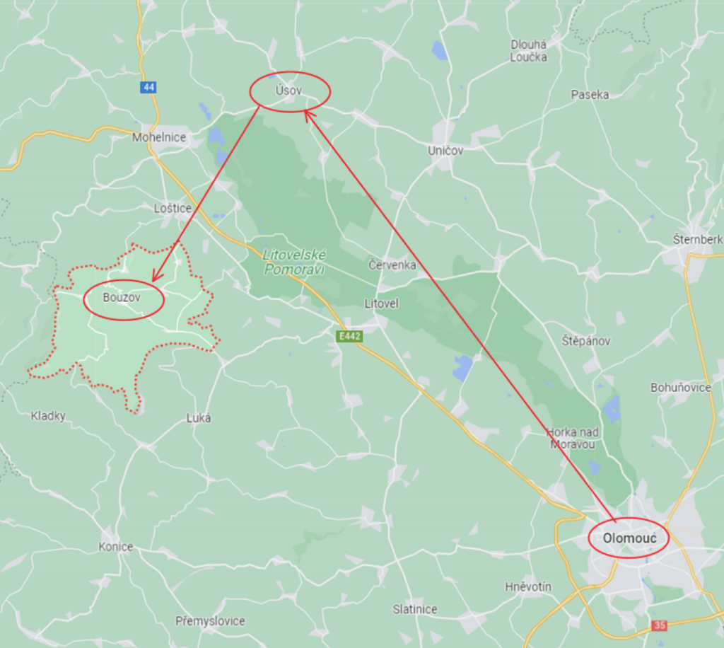 Bouziv Village is 366m above sea level in north west district of Olomouc.