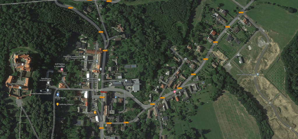 The name of village Bouzov was apparently originated in the 14th century by the founder of the village Bouzov – Mr. Búzov from Bouzov. Mr. Búzov was the first mentioned owner of this domain. He let build a watch castle around the trade route from Olomouc to Jevíčko