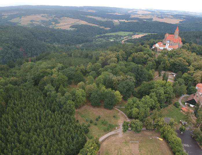Droning it and getting the beautiful Bouzov castle overlooking the little town
