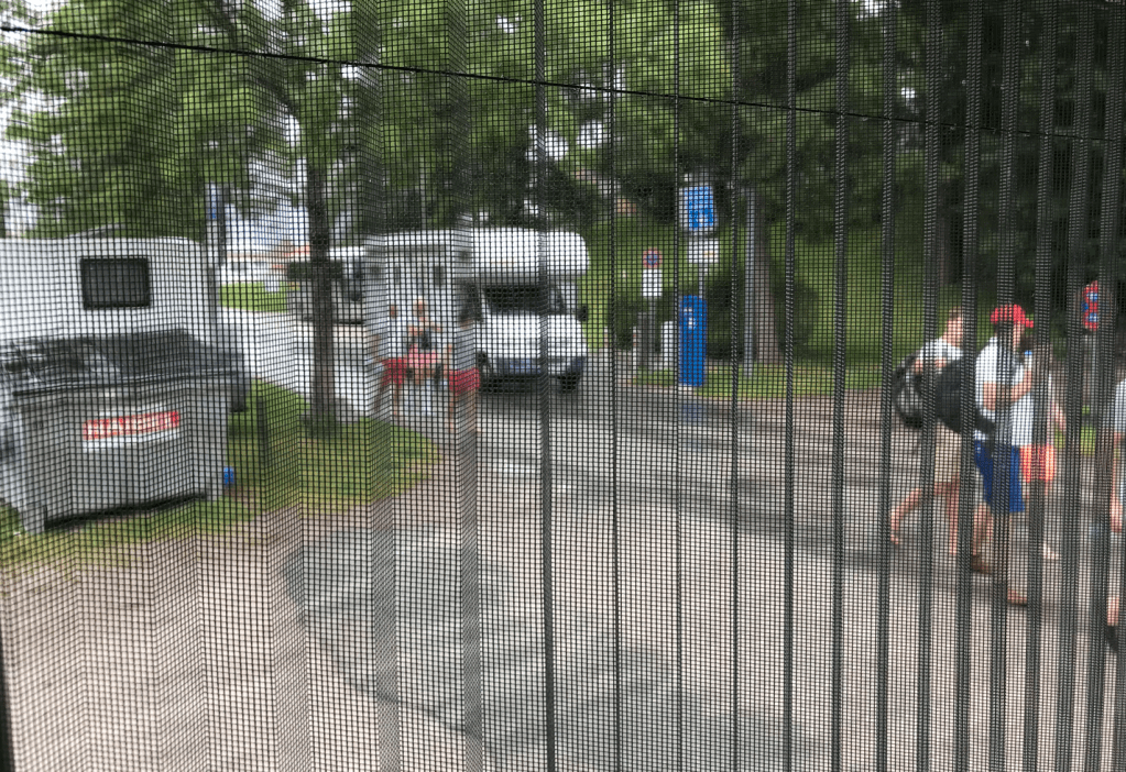 We eventually shoved ourselves in a very awkward spot at the front of the entrance, we were worried we were in the way of other vans trying to leave as it was a tight turn – but we stopped there anyways, we had no choice as it was just way too late to look for another place to park for the night