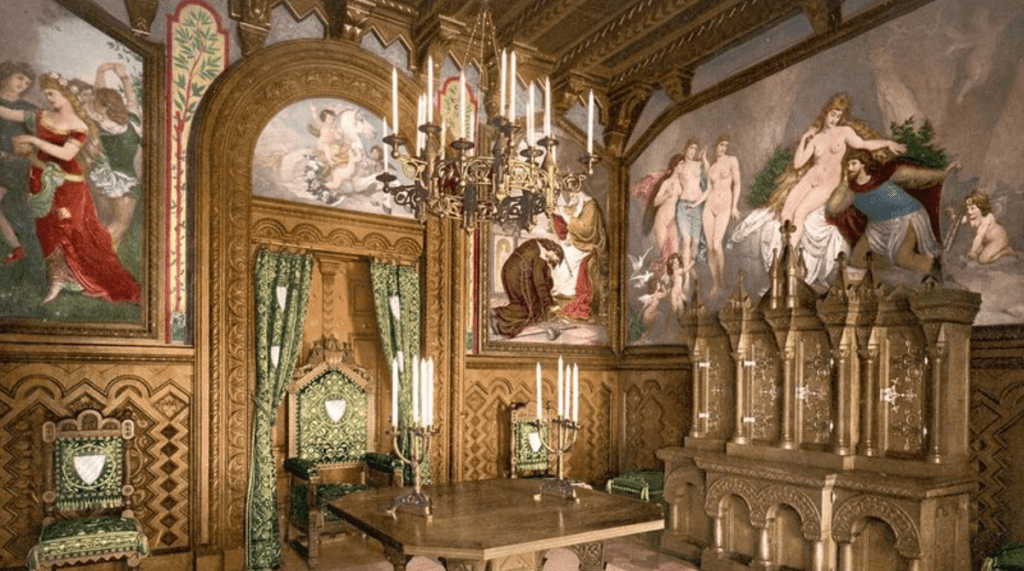 The walls are decorated with images from Romantic legends from Lohengrin and Parzival bought to life by Waygner