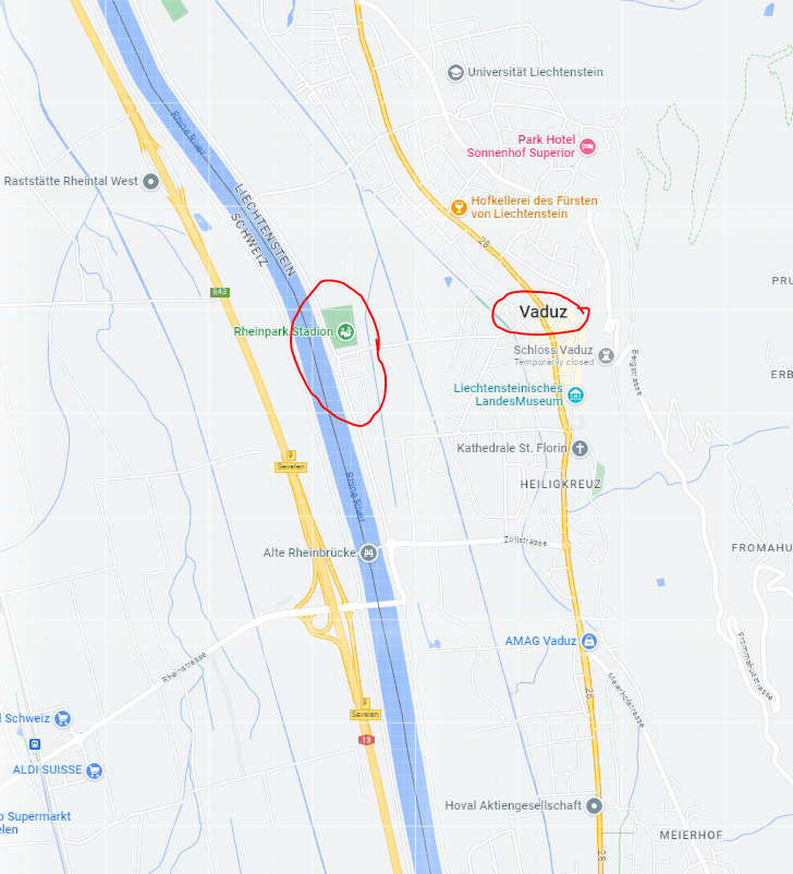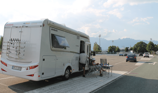 A carpark sitting right on the Rhine Rover on the border of Leichtenstein and Switzerland with plenty of space
