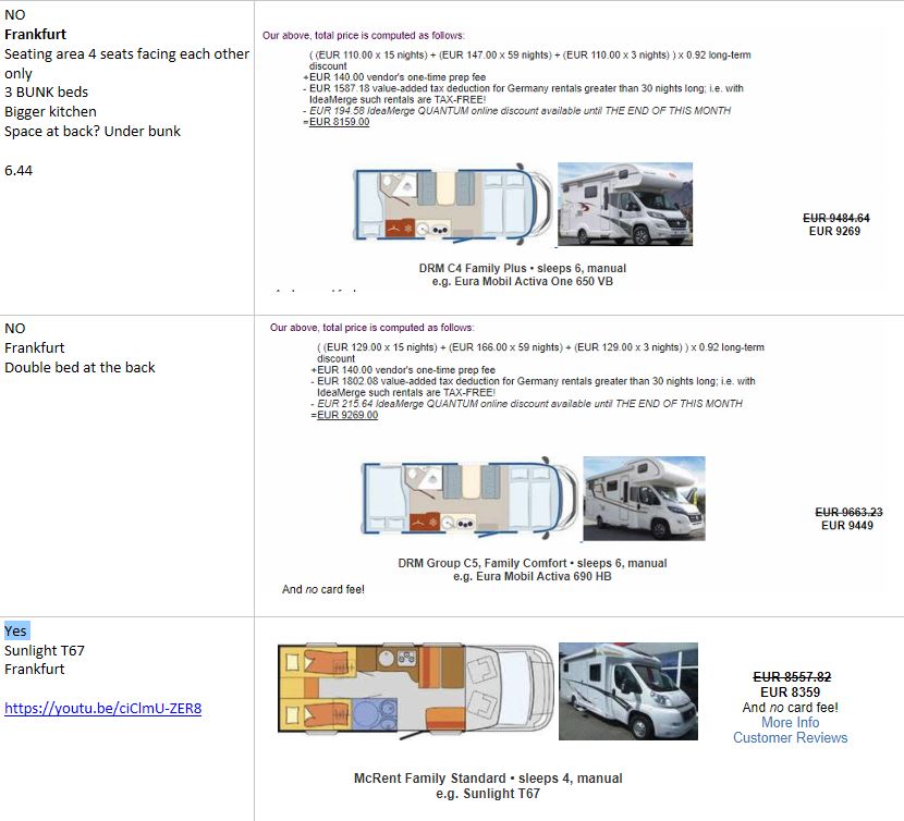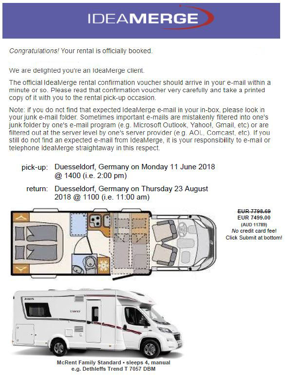 There are quite a few campervan renting facilities but the one I went for (after many review readings) was Ideamerge and they are a 3rd party agency for MCRENT who were the company we hired the van directly from when we got to Germany