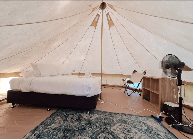 You also have the more expensve option now of Glapming, they have little tents out the back side of the property with twin beds and they look quite comfy but no toilets (there are shared toilets outside nearby)