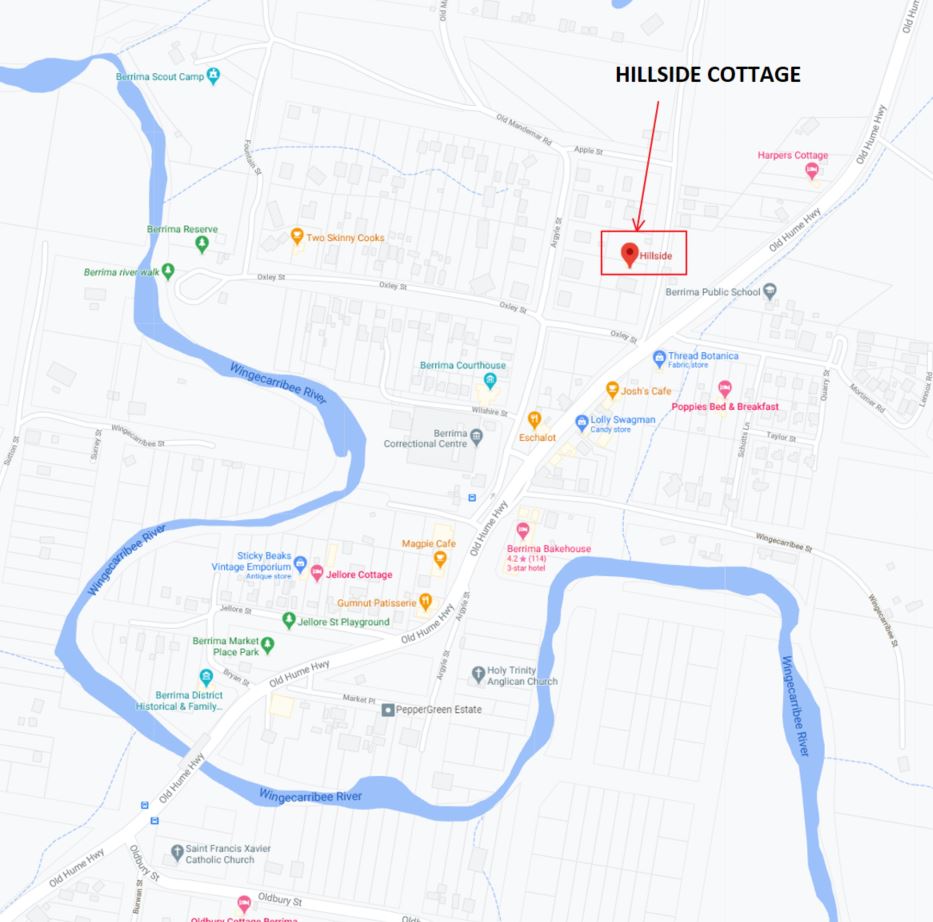 Took us around 1hr 30 mins to drive to Berrima, its a lovely drive from Sydney and when you leave the city you feel a sense of relief!The first view we had when arriving at our cottage, we loved it instantly!The really comfortable and cute lounge room where we chilled out with many bottles of wineThe kitchen in the main cottage – basic but had everything we neededOur lovely surprise sweets!The details count!The owners left us a loadf of break made locally as well as some sweets and jams, what a nice touch!The kitchen has the authentic original door and wall dating back to when the cottage was first made! The owners have incorporated it into the modern building that is there now, we really appreciated this detail and made it even more specialThe bedroom outside the cottage which was mineBedroom 1 inside the main cottageBedroom 2 inside the main cottage Love how they were both decorated in their own ways but in similar bright coloursThe main bathroom in the cottage, large and cleanJust off the veranda upon entry is another side room with an additonal room woth a double bed and ensuite, this was my room and I loved it! very cute and secluded with its own kettle, fridge and coffee/teaMy cute room with a back door to the patio and BBQMy cute little “fireplace”- the room was decorated in such a nice colourful way, funny enough, all my favourite coloursThe ensuite to my room – loving the towel colours!The trees just outside our cottages were so beautifulThe location of the cottage was FANTASTIC in relation to the town centre, it was right on the north side closest to Sydney and you could walk all the way down the main street to the other end – great location!