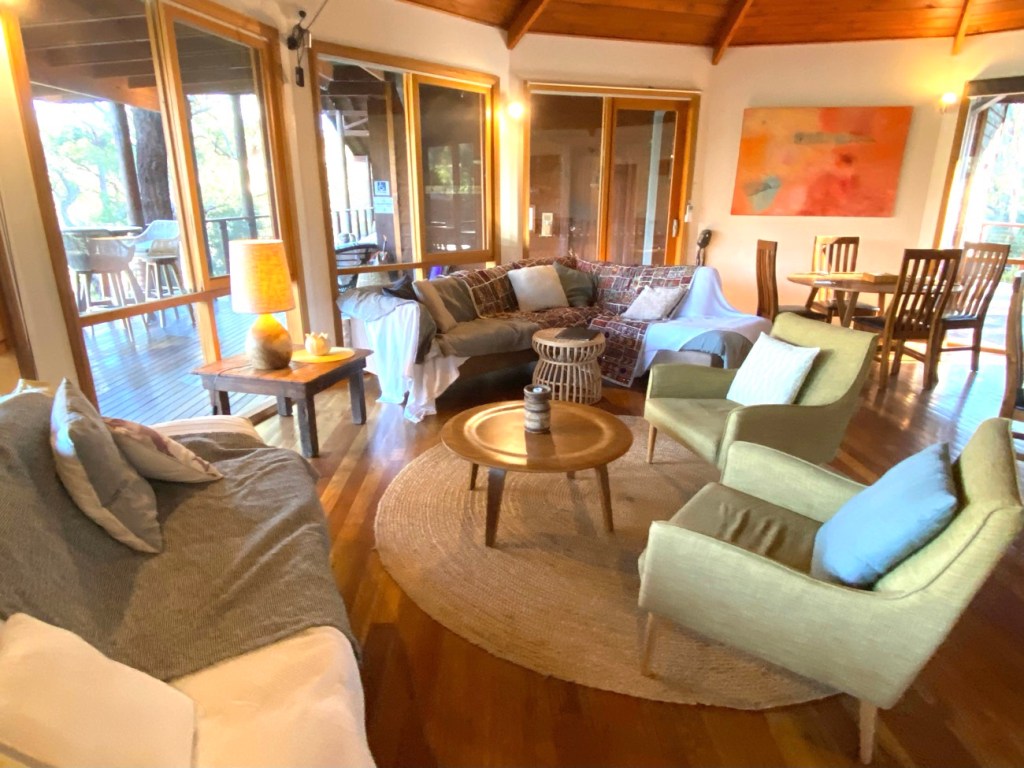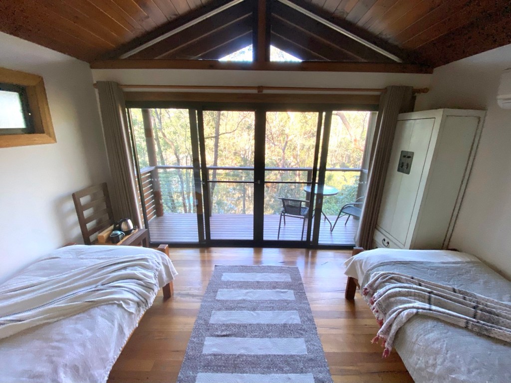 Bed was so comfy with heavy doonas which was perfect for the cold weather we were there forShower was from the rainwater and heating tank took around 60sec to heat up – 3min showers eachThe bathroom was seperate to the shower, clean and had all kinds of biodegradable goodies in there! Meaning, the toilet tissue and the soapsThe tree house was so cute and snug and had everything it needed!The view from our balcony overlooking the billabong