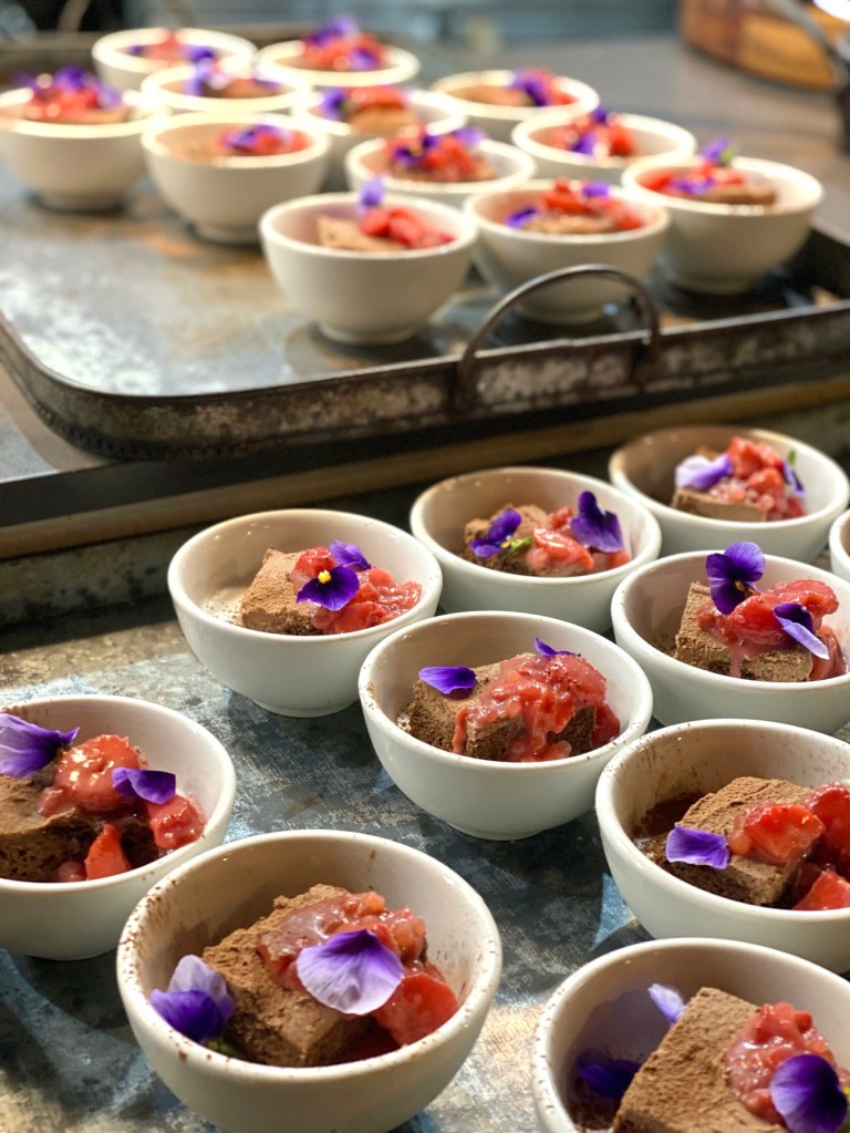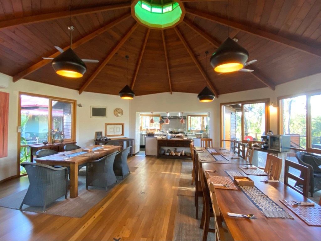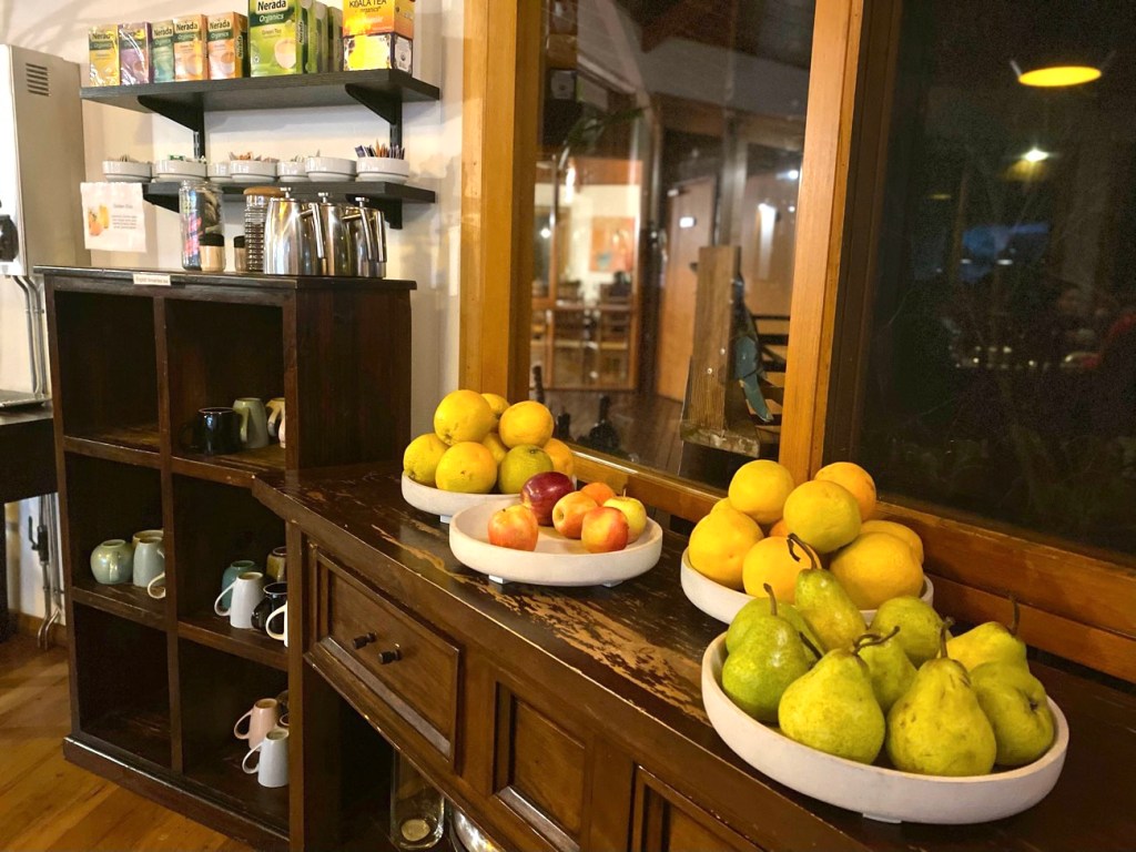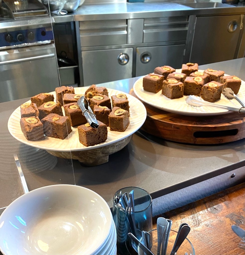 Breakfast was plant based big breakfast and fruit / muesliFresh fruit, tea and coffee was available all dayDessert for the first night, some sort of chocolate and berry fondanty stuff, plant based againPlant based banana bread The main dining hall where we were served our plant based food