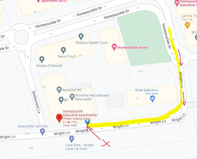 Parking is found via the back alley Wrights Lane and its one way so need to come from the roundabout to the right of the apartment, just follow the Chifley sign