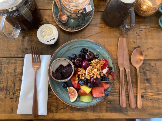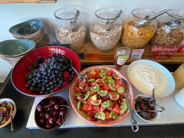 Breakfast was heavenly! My favourite breakfast in any hotel or accommodation EVER – fresh fruits and berries and jam with plant based museli – SO GOOD