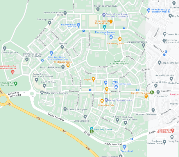 Taken from their website directly – Poundbury is an urban extension to the Dorset county town of Dorchester. Poundbury is built on Duchy of Cornwall land, in accordance with the principles of architecture and urban planning as advocated by HRH The Prince of Wales in his book ‘A Vision of Britain’.