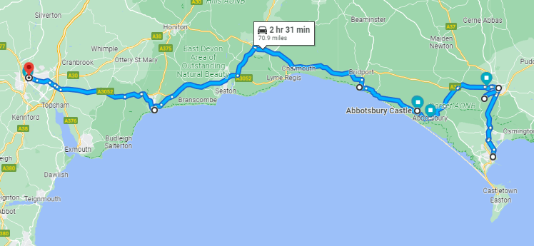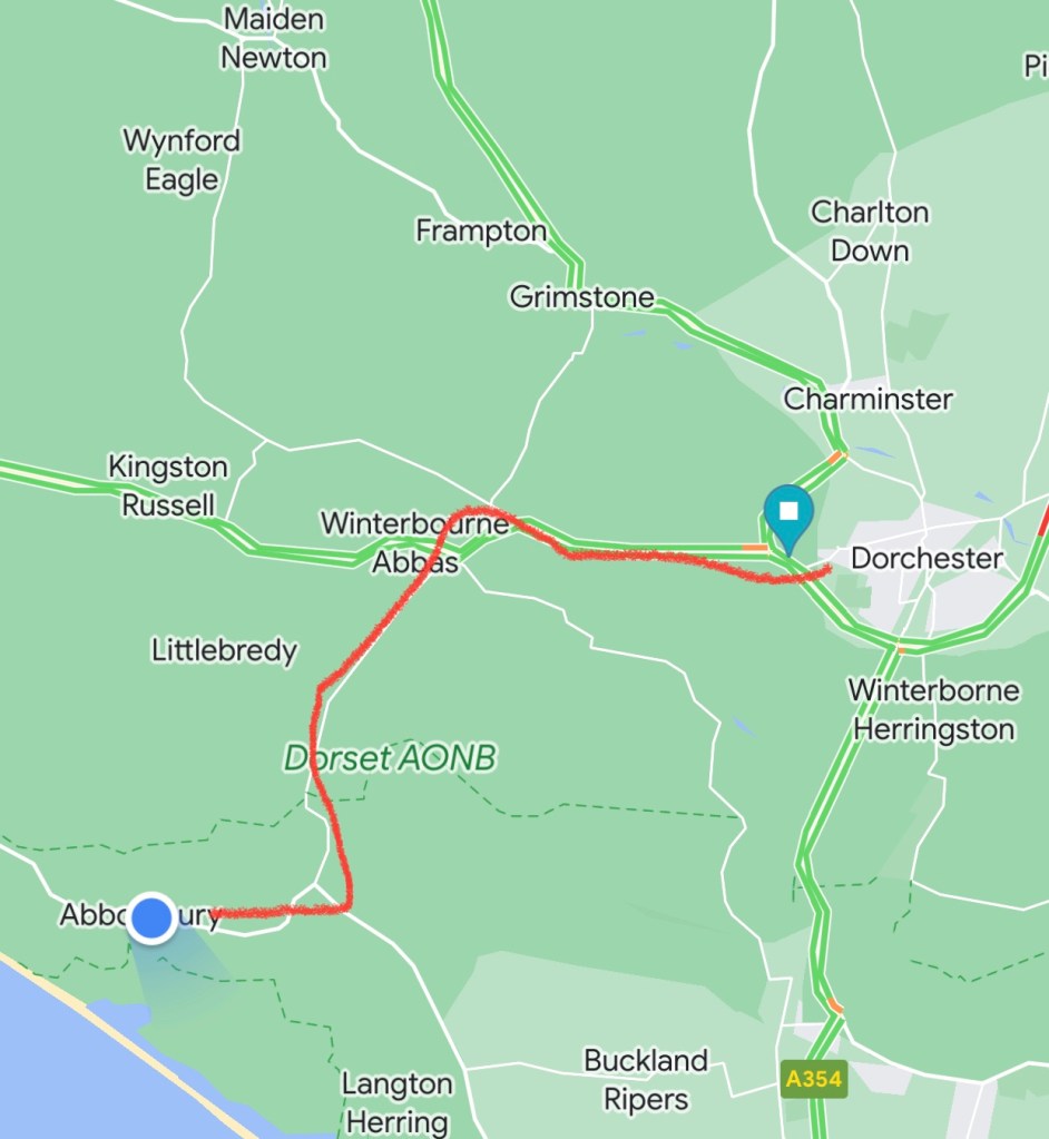 St Catherines chapel – on the hill in distance from Abbotsbury