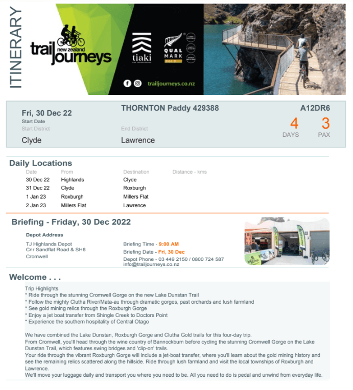 Trip: 4 Day Dunstan, Roxburgh & Clutha Trails