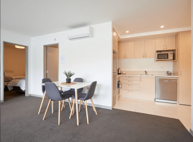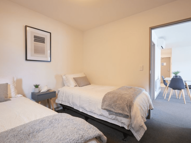 Bedroom 1 at this Queenstown lakefront apartment is fitted with a queen bed, while bedroom 2 has twin singles. This is an easy option for couples, friends, and family.