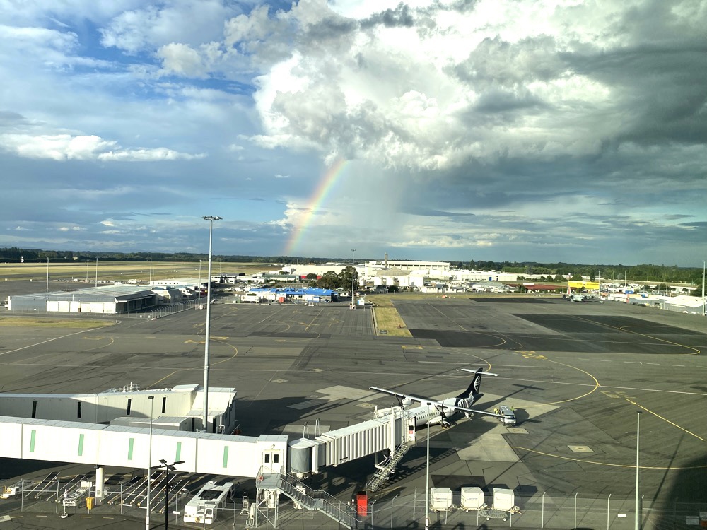 Rainbow over the airport π checking out the planes taking off and landing from the restaurant and bar area