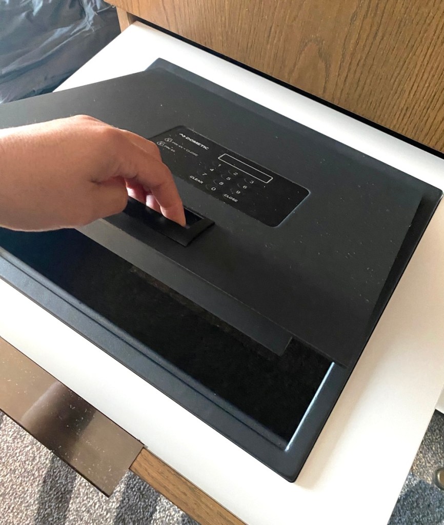 The safe is also located in a drawer like the fridge