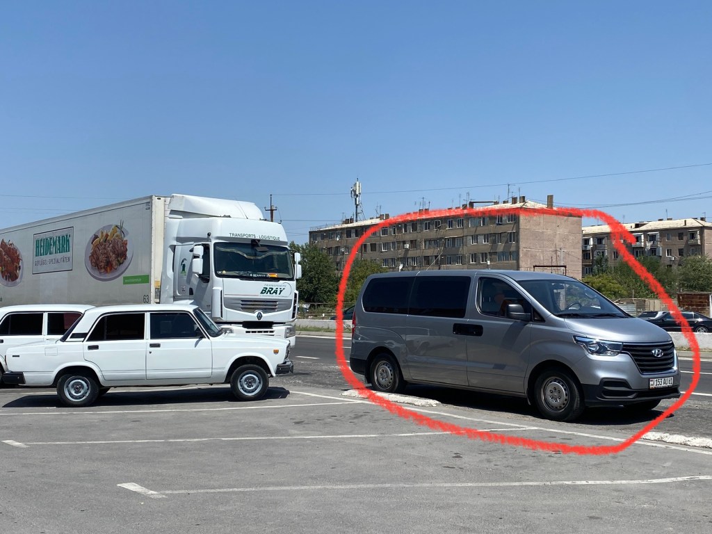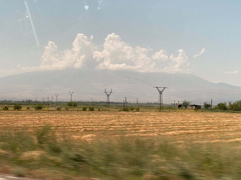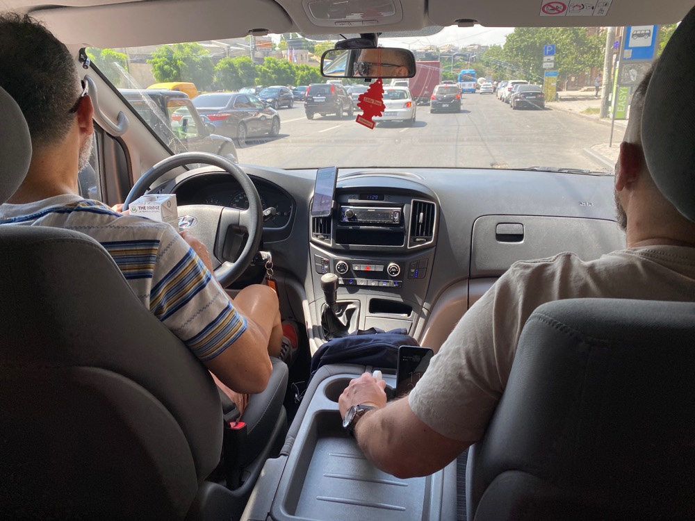 On the road – driving through the tons of traffic in YerevanOur rental car Mount Ararat behind the clouds