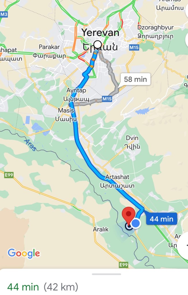 45min drive from Yerevan most spent in traffic – an easy drive with great roads