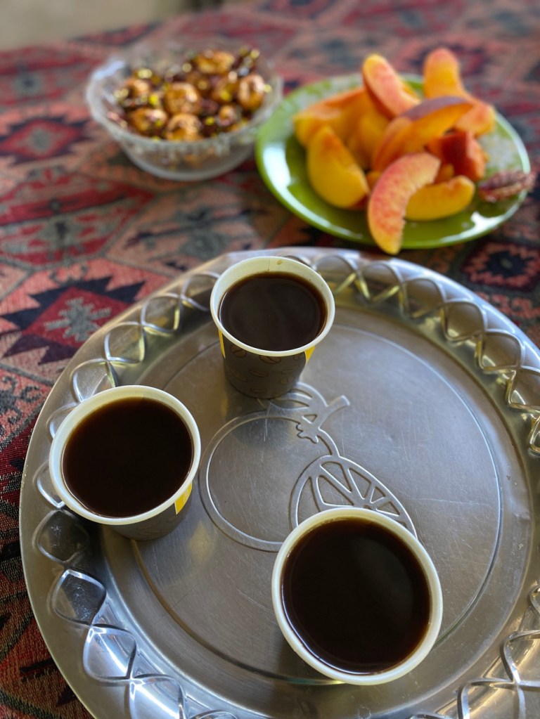 The ladies selling peaches beautifully stacked and displayed A really nice hot Armenian coffee with peaches