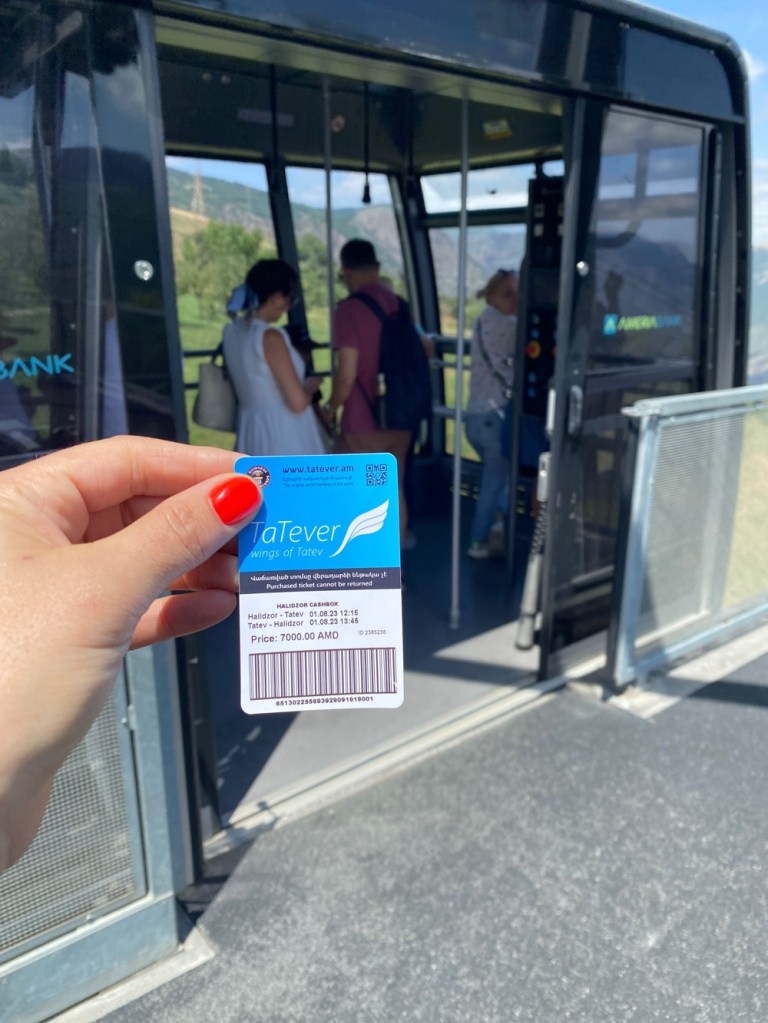 The wings of Tatev cable car spans the canyon with amazing views over Halidzor and the canyonModern ticketing systems here at The Wings! Def a new thing for Armenia – the longest non stop double track cable carOld Halidzor a village in the canyonThe first glimpse of Tatev Monastery (top right)The Tatev monastery mapSt Paul & St Peter Church in the monastery complex