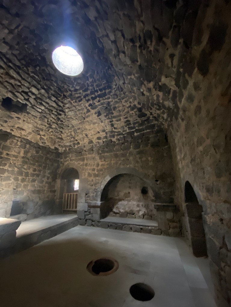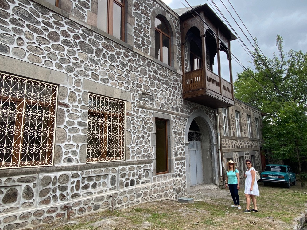 Breakfast at the hotel – beautiful fresh fruit and veggiesThe streets of Goris and their russian carsHouse Museum of Axel BaghuntsOne of the 19th c homes on the road in to the city centreKhatckar at Axel Museum House Every house had its own unique style and they used the stone in an interesting and asthetically beautiful way – i love the large balconiesA random “Shane” food court! Not a very Armenian name but anyways!Our beautiful hotel MirhavPolpolak (bubbler) with fresh water from the mountains in front of the newly built pharmacy in the centre
