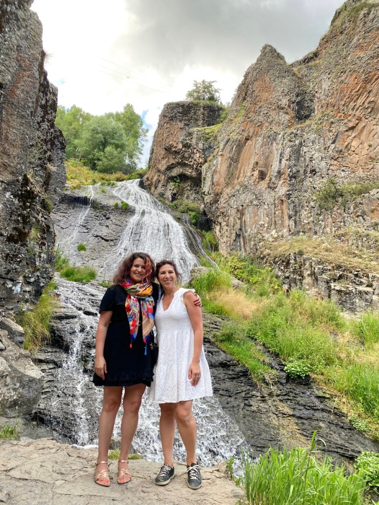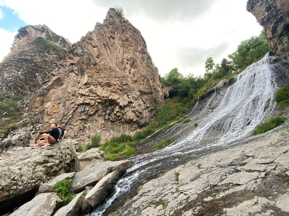 The waterfall can be climbed up and you can take some really nice picsIts also called “the mermaids hair” and at a height of 72m and splits into the Arpa River Jermuk Waterfall tourist shotThe interesting rocks surrounding the waterfallOur car parked amongst the locals soviet looking cars