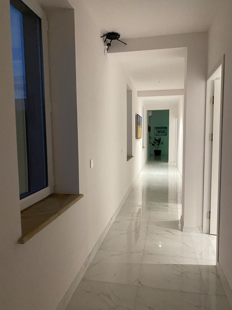 We arrived and drove down the windy driveway just off the main road, and saw the very newly made 3 storey red tuff building with a gorgeous mountain view behind