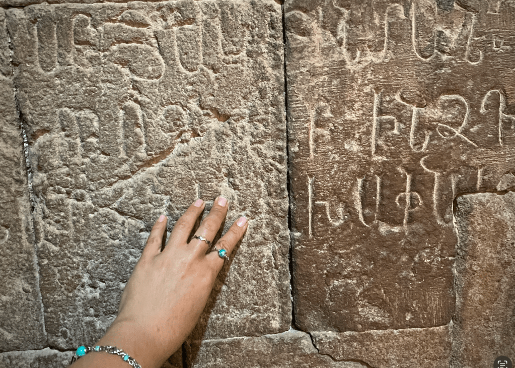 This saved space, so that more could be written. During the unstable times, when invasions and destruction were common, Armenian history was written carved into the church walls, and words were written as monograms, with all the letters stacked on top of each other, in order to save space.