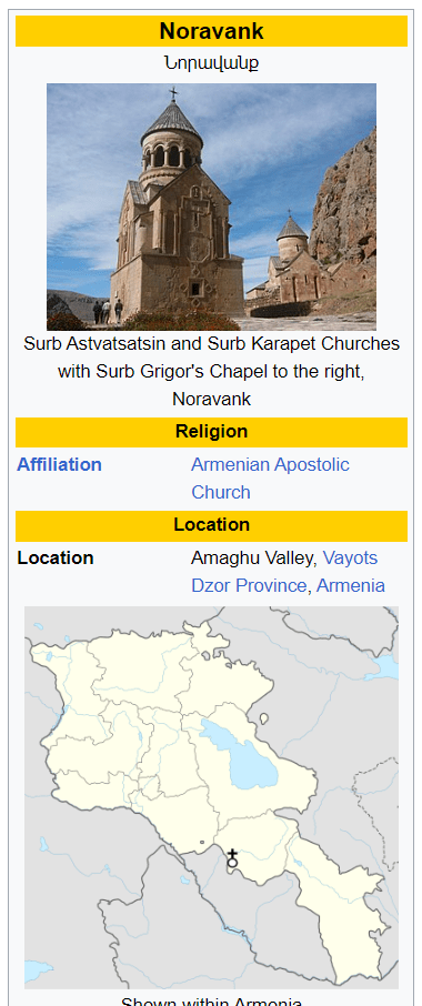 Noravank was an important location for the cultural and arts of the time in Armenia and centre of artistic production