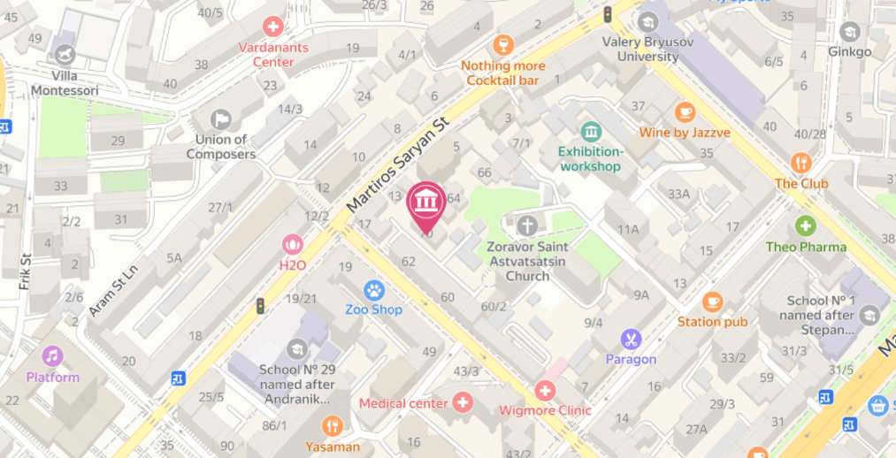 The previous residence currently operates as a house museum overseen by the National Gallery of Armenia.