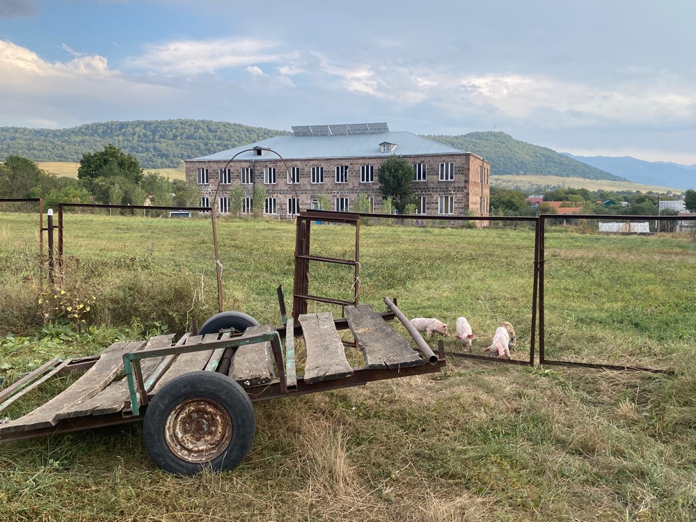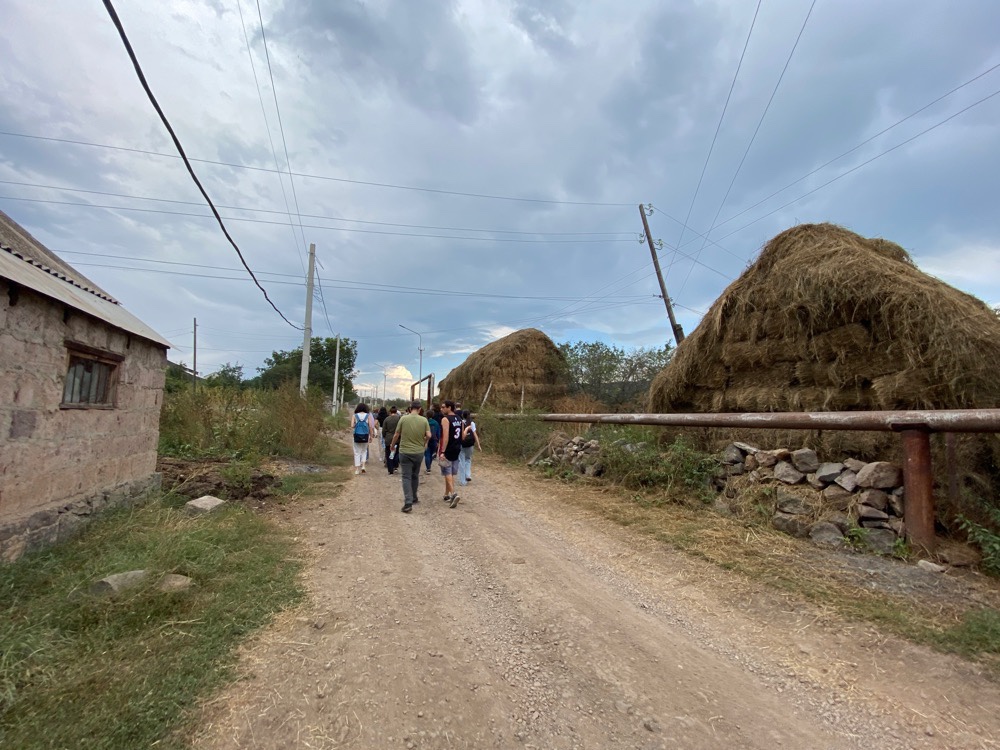 We began walking through the village streets, mostly gravel roads leading to many properties which were farms with cute little animals running around