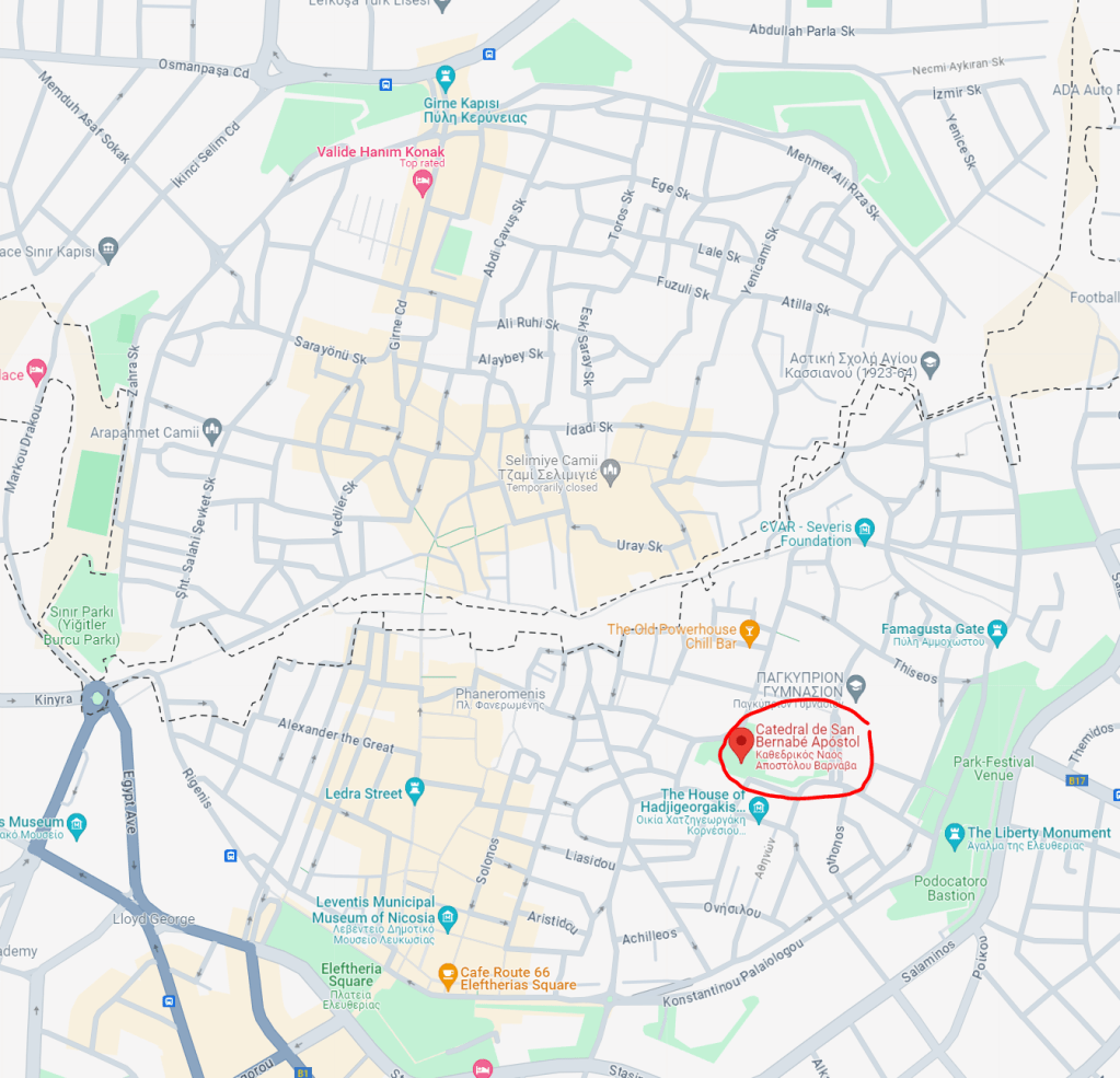 Location of the Cathedral – this is a MUST see when in Nicosia!!