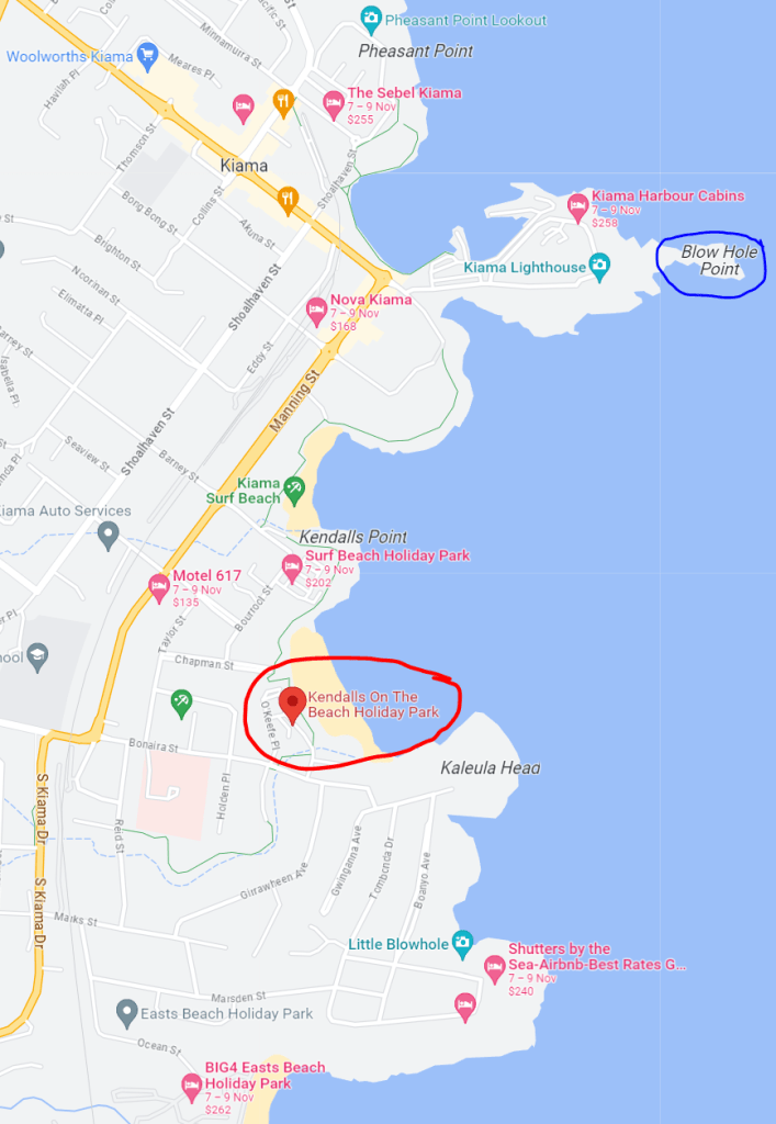 The caravan park is in a really nice location just outside the Kiama CBD looking straight out to the Lighthouse near the blowhole, beautiful location beachfront