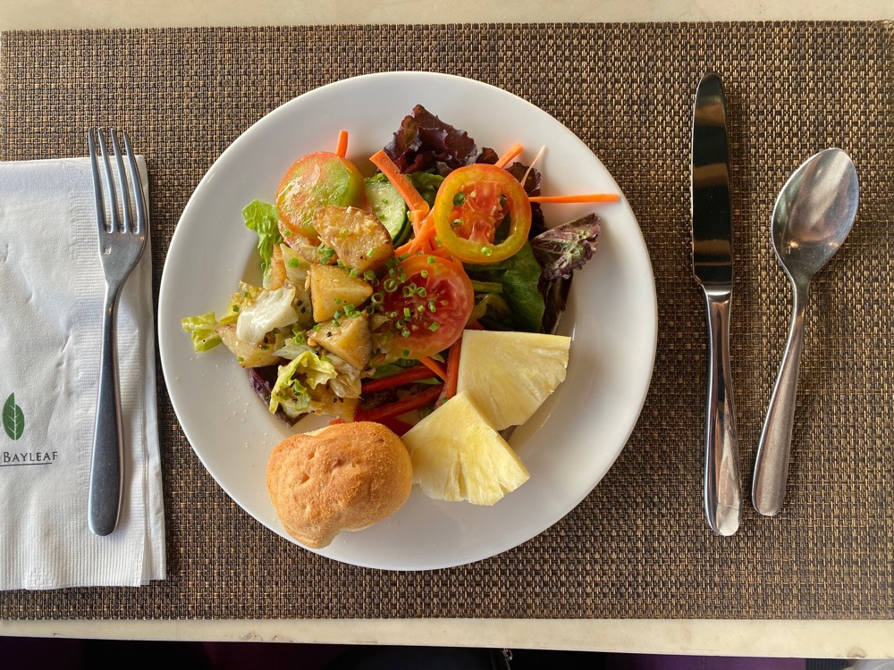 Fruits were 2 choices, watermelon and pineapple and salads were the same every day
