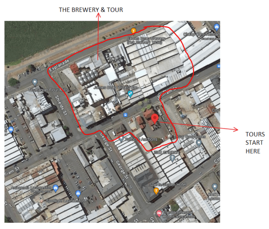 The tour starts at James Bags Brewery Pub across from the factory itself