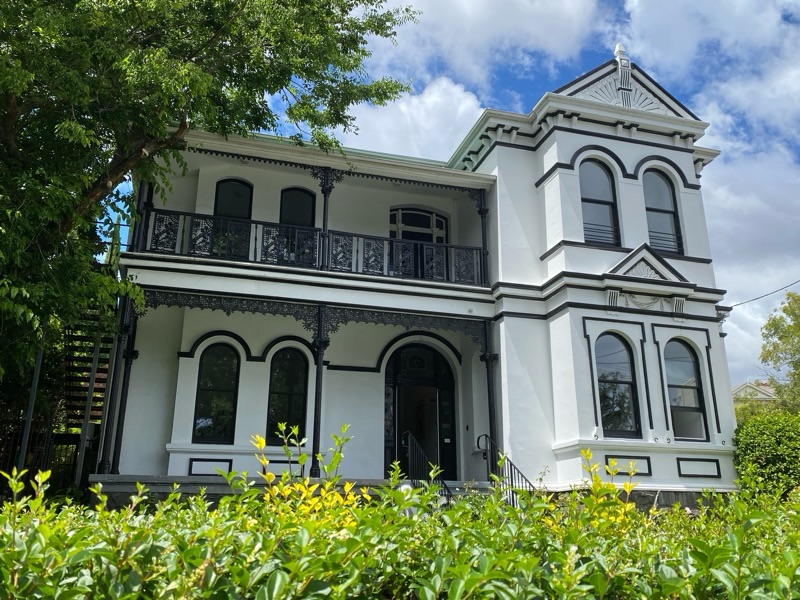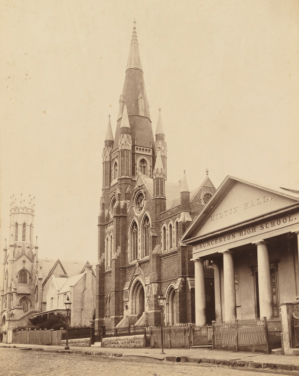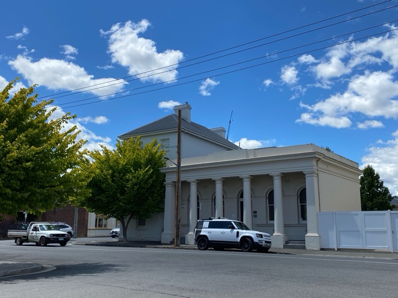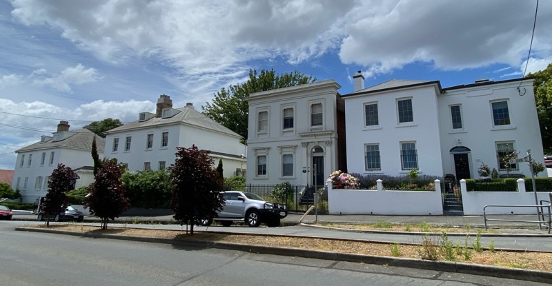 Next to the church is Milton Hall – 1842 was St Johns Congregational Church and is in Greek Revival style – from 1884-1913 it was used as Launceston High School
