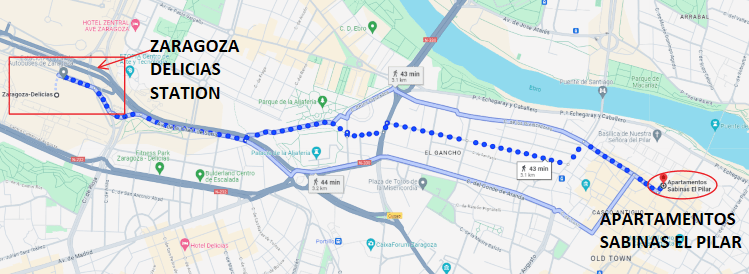 A 43min walk to the accomodation or a quick bus ride on BUS #34