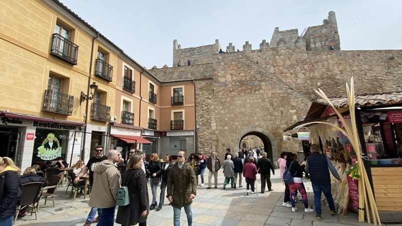 Iglesia-convento de Santa Teresa – This church is the birthplace of Saint Teresa of AvilaThe Baroque altar laced in gold with its beautiful intricate domeThis site is known for being a pilgrimage sitePlaza Adolfo Suarez Fountain with the Medieval Walls of Avila behind it One of the busy gates of the old town – so much going on with many tourists wandering around The medieval architecture of Avila Cathedral – this part was incorporated into the ancient defensive walls PALACIO DE LOS Almaraz – a Renaissance style building with some gothic and medieval elementsChapel of Mosén Rubí – A gothic and renaissance styles – this interesting building has this central cenotaph The UNESCO medieval fortifications – the walls stretch for around 3km and encircles the old town